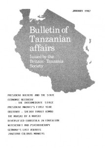Just before going to press we Beard from Professor Terence Ranger, the first editor of this Bulletin, about his visit, towards the end of December 1986, to what he described as the cheerful Christmas bustle of Arusha (with abundant supplies in the shops) to attend a four day international conference on “The Arusha Declaration”, 20 years after its publication. Professor Ranger said that he was deeply impressed by the diversity of views expressed (there were 45 papers), by the self confidence of the Tanzanian University staff, from many different departments, and the libertarian commitment of most of the papers. He wondered whether such a conference could take place in other African countries.